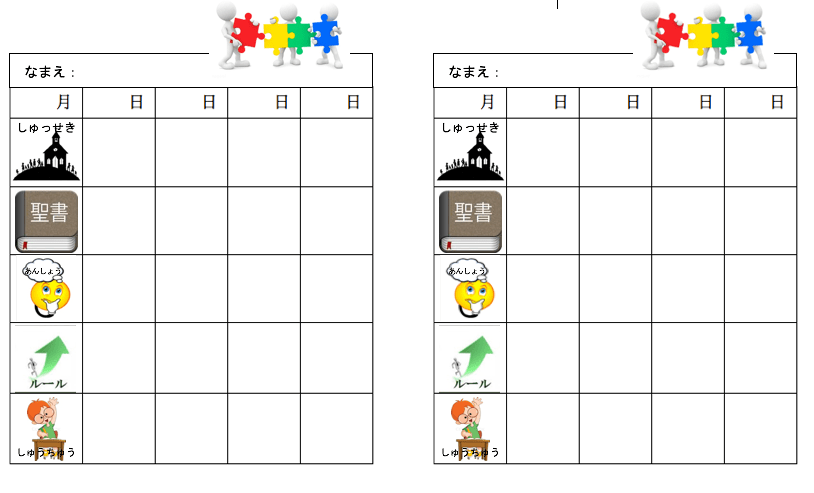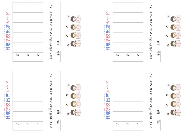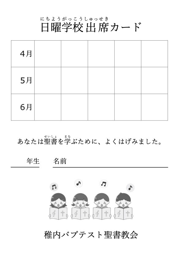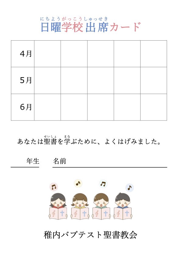 日曜学校出席シート・カードを提出したい方はこちらへ