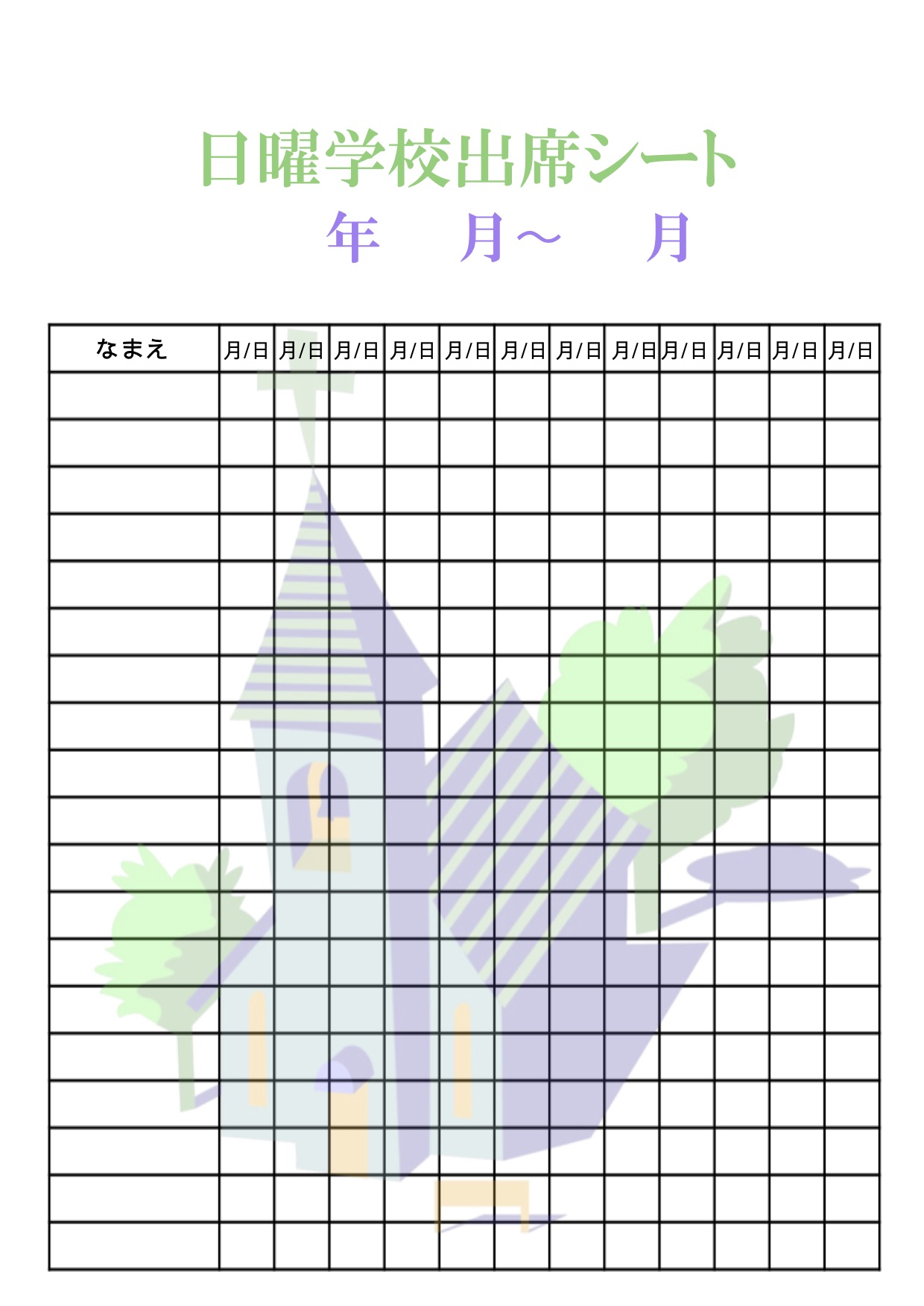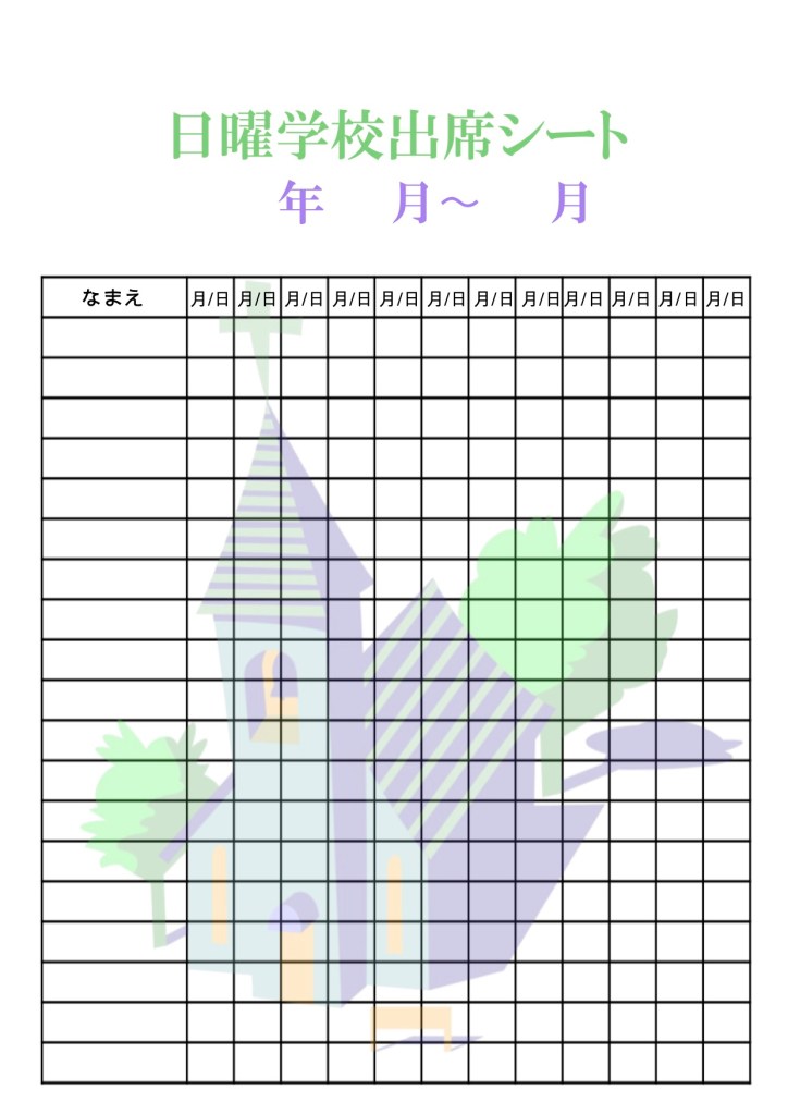 ご自由に日曜学校出席表を調整し、印刷してください。
